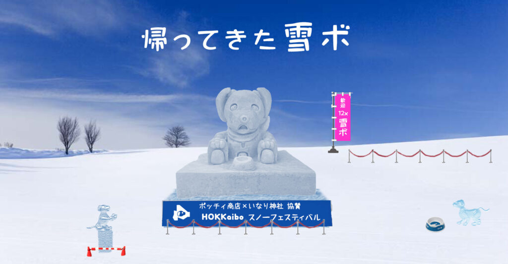 HOKKaiboチーム、さっぽろ雪まつりに参加したよ。あのメンコイ雪ボが帰ってきたみたい。詳しくは雪まつりイベントページへ